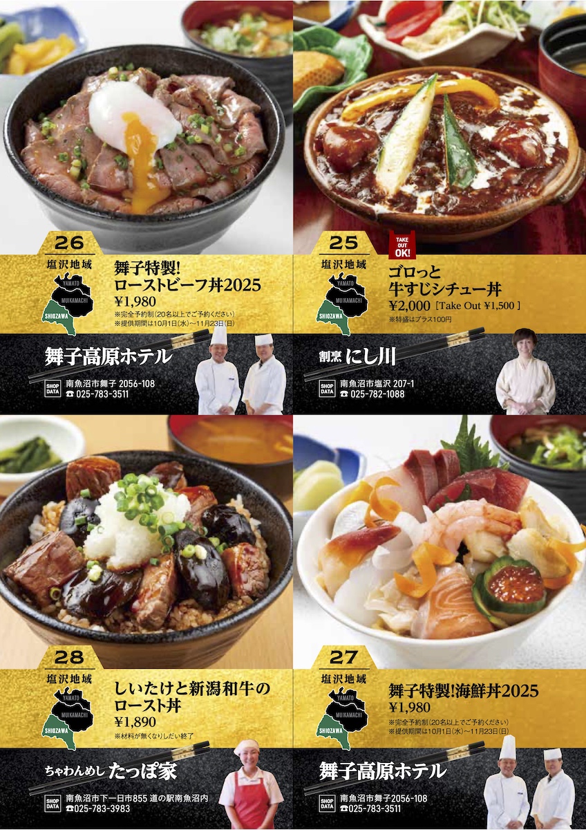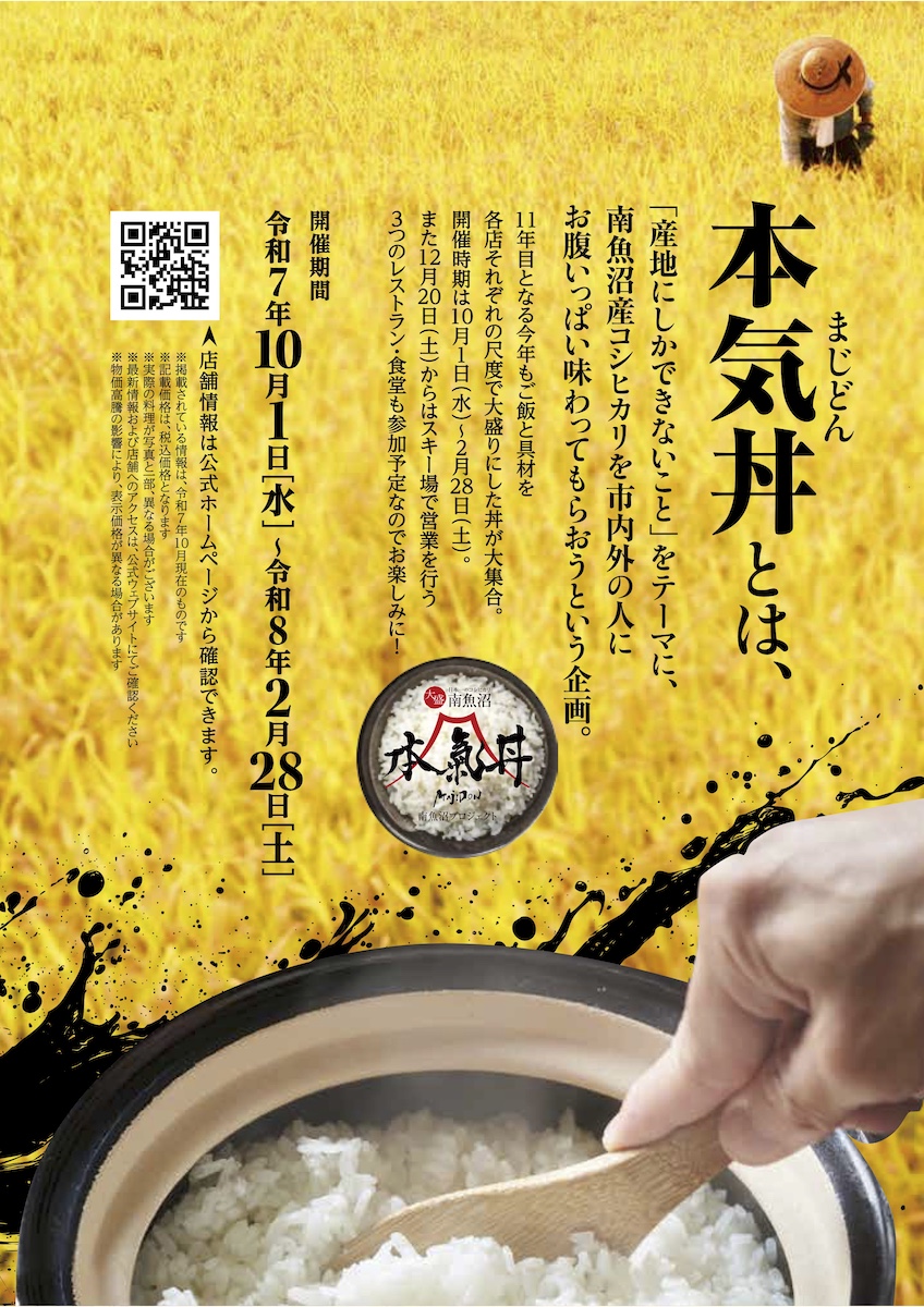 南魚沼、本気丼パンフレット2025年版です 2025.10.01 南魚沼、本気丼パンフレット2025年版です。 データをダウンロードすることもできますので、ご活用ください。 南魚沼、本気丼パンフレット2025(10/1~2/28) ダウンロードはこちらからPDFファイル/9.2MB